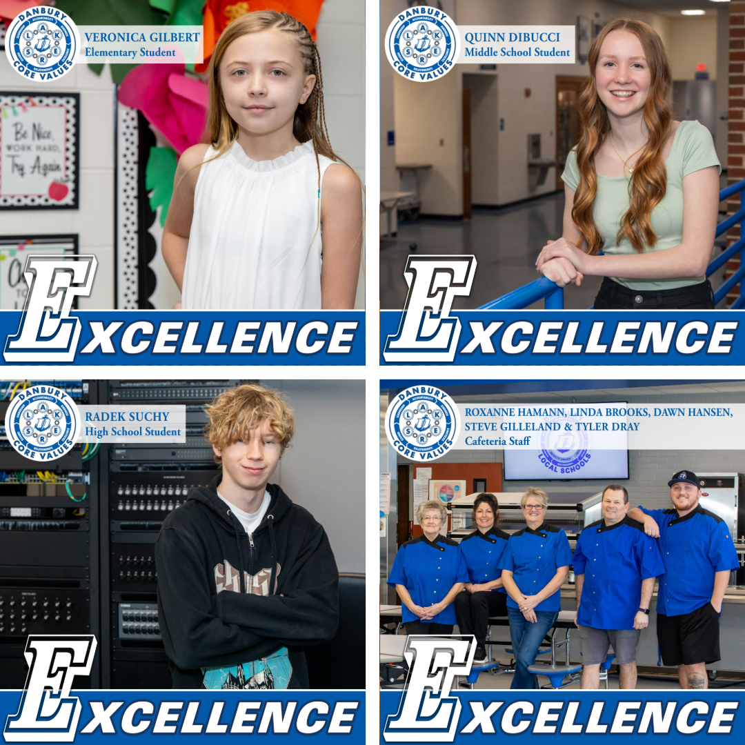 The staff at Danbury Local Schools commits to implementing research based strategies which guarantee that EVERY student makes a minimum of one year’s growth and student achievement in language arts and math, in each grade level, meets or exceeds 80% proficiency as measured by performance on local, district, and state assessments.